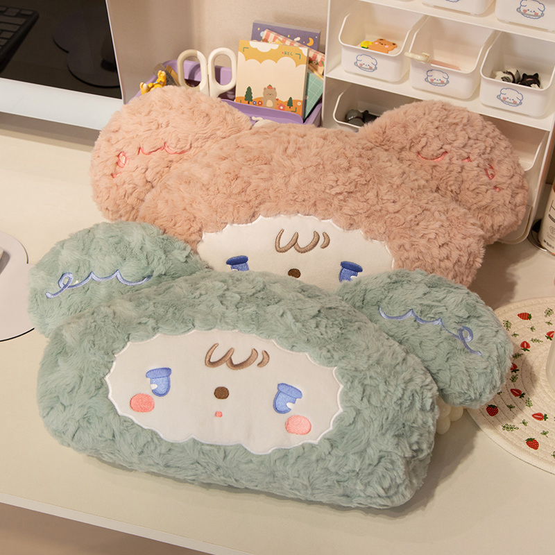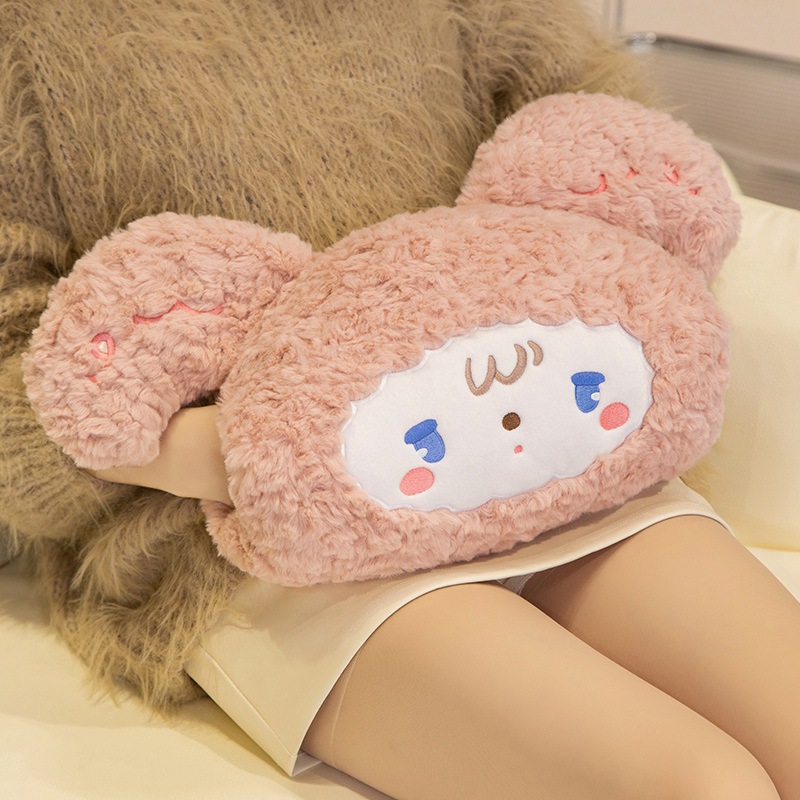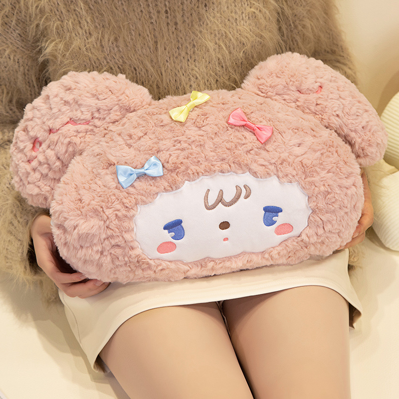 “Snuggle Bunny,” the plush lap pillow that combines kawaii culture with the ultimate comfort experience. This blush-pink bunny lap pillow is crafted from the softest, plush fabric, designed to bring a touch of warmth and charm to any setting. It features an adorable embroidered face with rosy cheeks, bright blue eyes, and a tiny, sweet smile that invites relaxation and comfort. With its large, floppy ears and fluffy texture, “Snuggle Bunny” is not just a pillow but a lovable companion for lazy days, study sessions, or just lounging around.