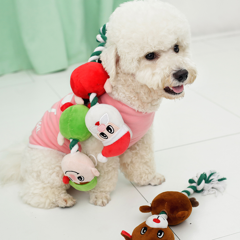 The soft plush figures are gentle on teeth and gums, making them ideal for both puppies and older dogs. Moreover, the Christmas-themed characters add a dash of cheer to your pet’s toy collection and double as cute festive decorations!