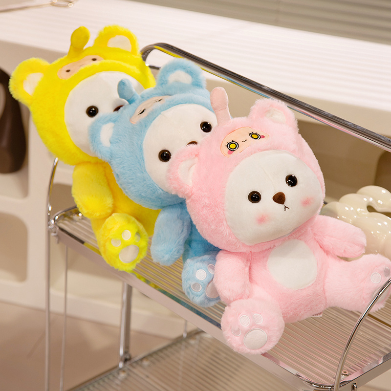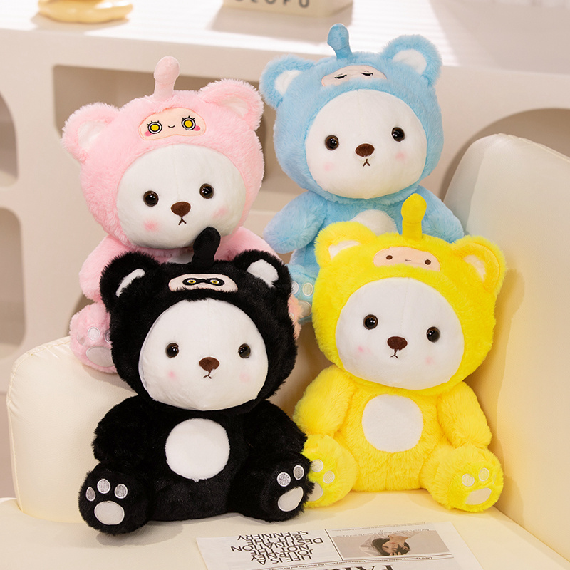Step into a world of cuddles and charm with the Whimsy Bear Collection! Dressed in vibrant, animal-themed onesies, these plush bears are here to bring joy to your home. Each bear is uniquely adorable, from the pink one with its gentle butterfly hat to the black bear with its mischievous bat wings. The soft, plush fabric is perfect for snuggling during nap times or decorating a child’s bedroom with a touch of whimsy.