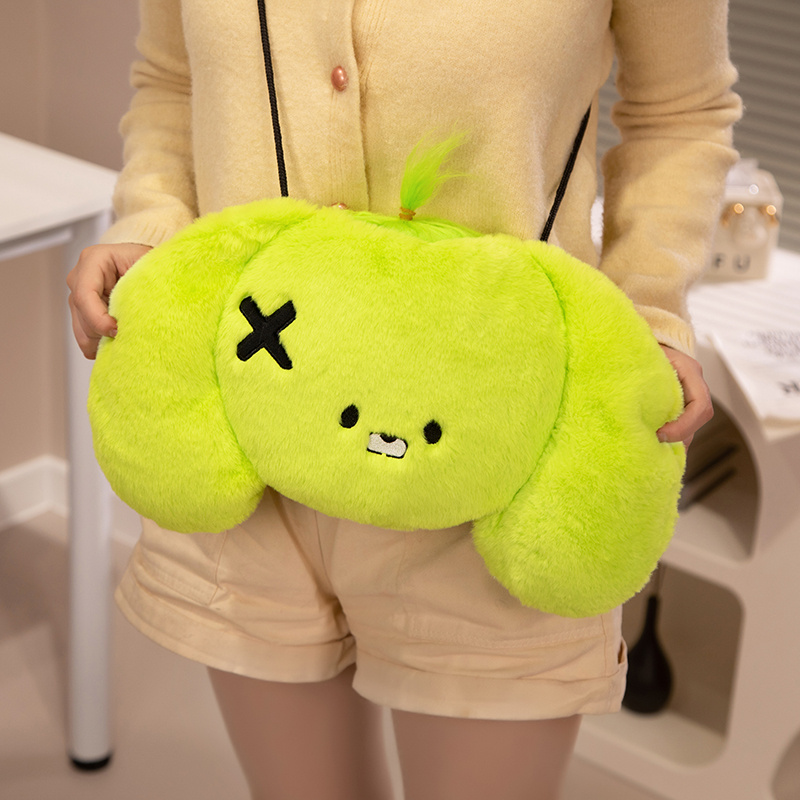 Crafted with a plush, velvety fabric, it is gentle to the touch and perfect for cuddling. The vibrant green hue is reminiscent of fresh, zesty limes, invigorating your mood and outfit. But don’t let its playful appearance fool you; this bag is as functional as it is fun. A spacious main compartment with a smooth zipper closure keeps your essentials secure, while the durable strap offers comfortable wear over your shoulder or across the body.