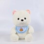 “Bumble Bib Bear” is a cuddly white plush bear with a bumblebee bib, perfect for hugs and play. This plush friend brings a touch of joy to any room.