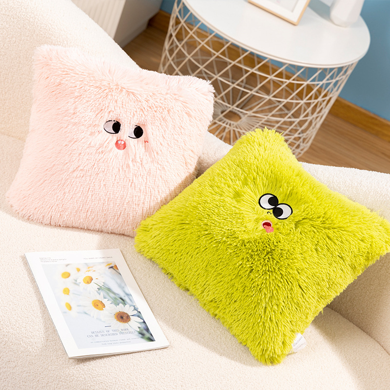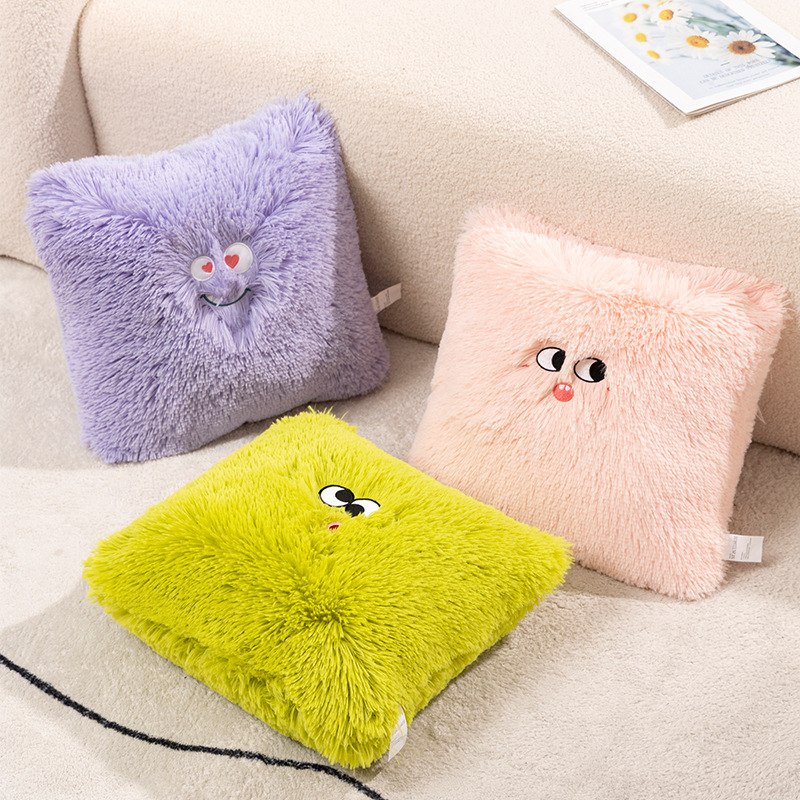 Fuzzy Cushion Pillow Square Emoji Colorful Sofa Chair Cushion Pillow
