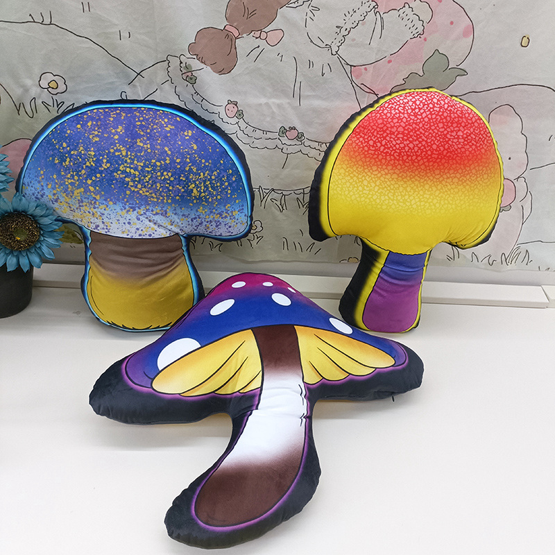 The collection features three designs: one with a sparkling blue cap sprinkled with golden flecks, a fiery sunset-inspired red and yellow gradient, and a third sporting classic storybook colors with a twist of purple. Made with soft, durable fabric, they’re perfect for a cozy reading nook, a child’s playroom, or as a statement piece in a nature-themed living area.