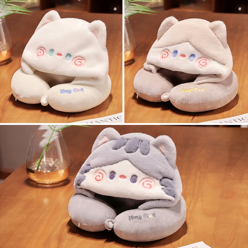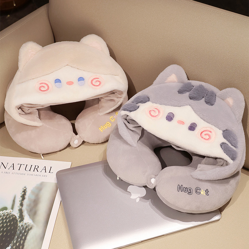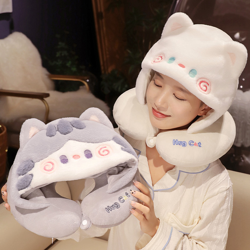 Home Office Essential Hat Cute Animal Kitty Cat U-Shaped Pillow With Hat