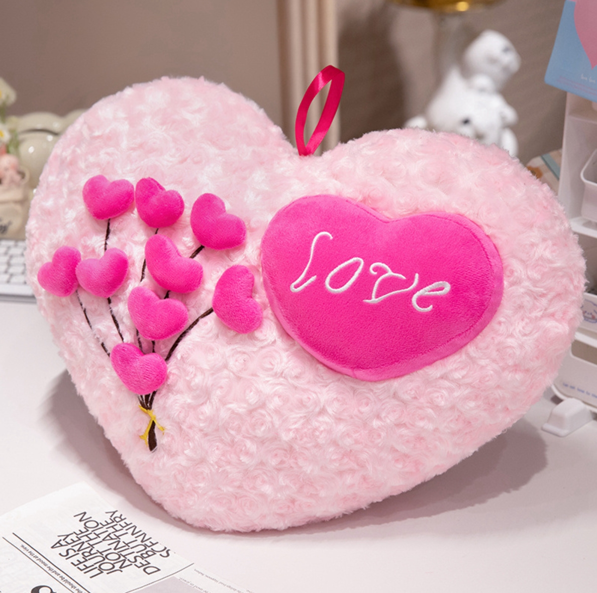 Love heart pillow making them very suitable for hugging and cuddling. Each stuffed toy is designed with soft fabric, offering a gentle, skin-friendly touch that brings a comfortable experience.