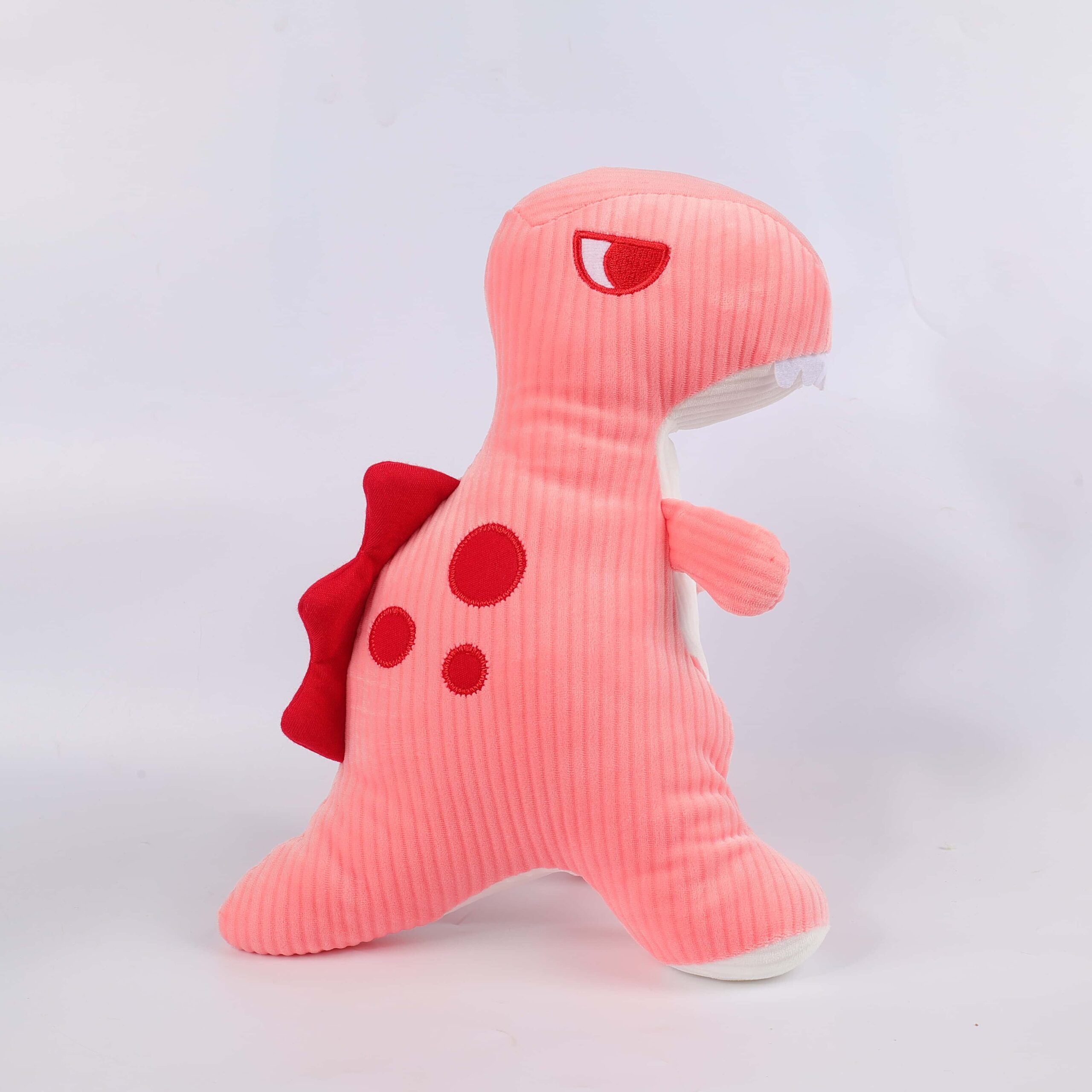 “Rosie the Ribbed Dino,” a plush toy that’s as unique as it is cuddly. Rosie’s soft, ribbed pink fabric is a tactile delight, inviting little hands to explore and snuggle.