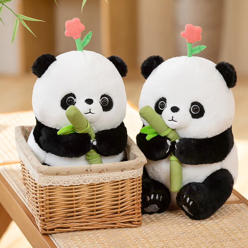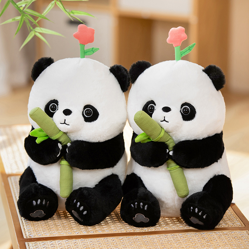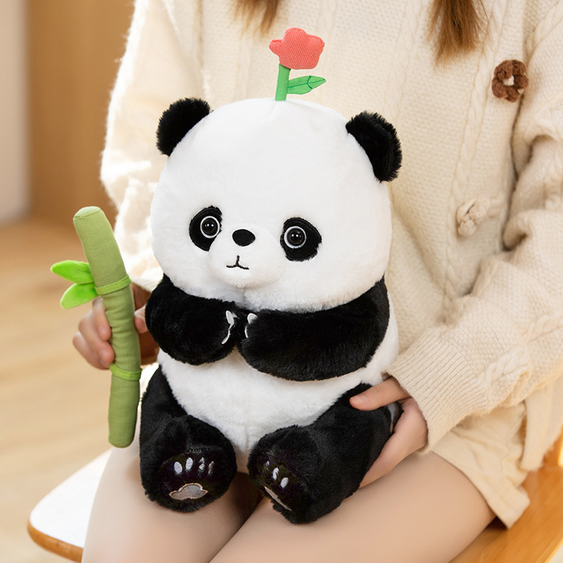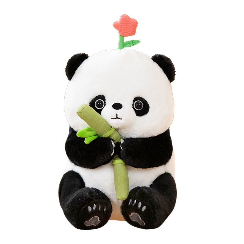Delight in the cuddly charm of our Panda Huahua plush toys, featuring soft fur, a loving gaze, and a bamboo shoot accessory for a dash of natural whimsy. Perfect for panda enthusiasts of all ages!