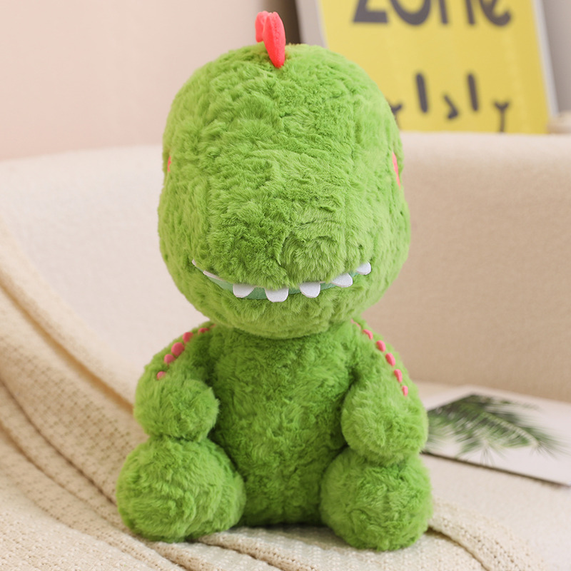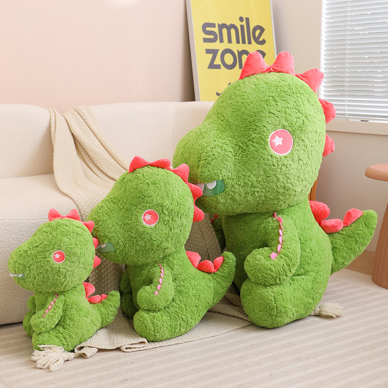 Delight in our plush dinosaur family, with soft green fabric and cheerful pink spikes, ready for cuddles and adventures in any playful setting!