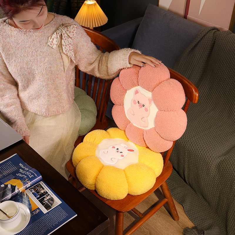Elevate the charm and comfort of your living space with our delightful Flower-Shaped Animal Cushion. Designed with a touch of whimsy, each petal of this unique cushion features a plush, vibrant hue that instantly brightens up any corner of your home. At the center of this floral fantasy sits an adorable animal face, complete with expressive eyes and a cute snout that invite you to relax and smile. Crafted from high-quality, soft fabric, this cushion provides the perfect blend of support and softness for sitting or resting your feet after a long day.