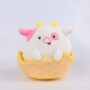 This plush toy features a delightful piglet snugly nestled within a bright yellow eggshell, complete with playful pink polka dots and wavy lines that evoke the spirit of Easter and springtime. The piglet’s soft white fur is accented with pastel pink ears and a charming little snout, while its wide eyes sparkle with glee.